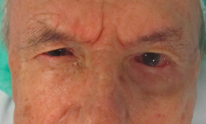 Ectropion della palpebra inferiore sinistra in paralisi facciale