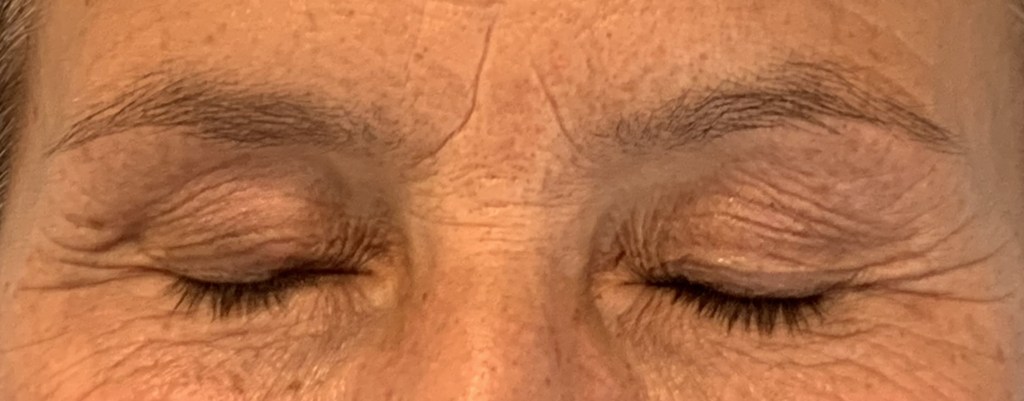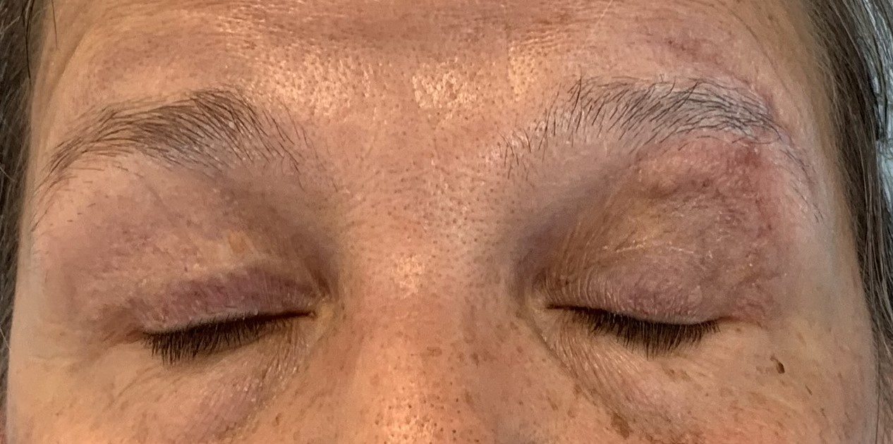 DOPO RIMOZIONE E RICOSTRUZIONE CON INNESTO CUTANEO DALLA PALPEBRA SUPERIORE DESTRA
